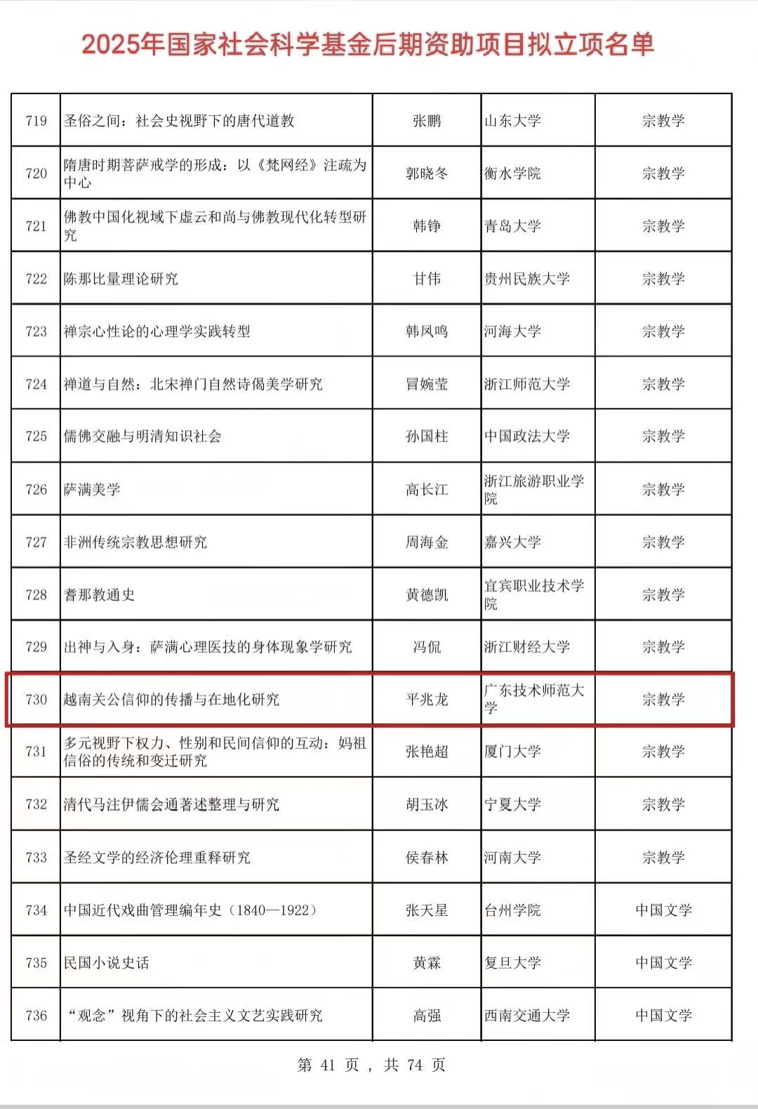 12月1日,全国哲学社会科学工作办公室公示了2025年度国家社会科学基金后期资助项目立项名单。我院平兆龙副教授申报的课题经激烈竞争,成功获批,成为全国获立的274个项目之一。