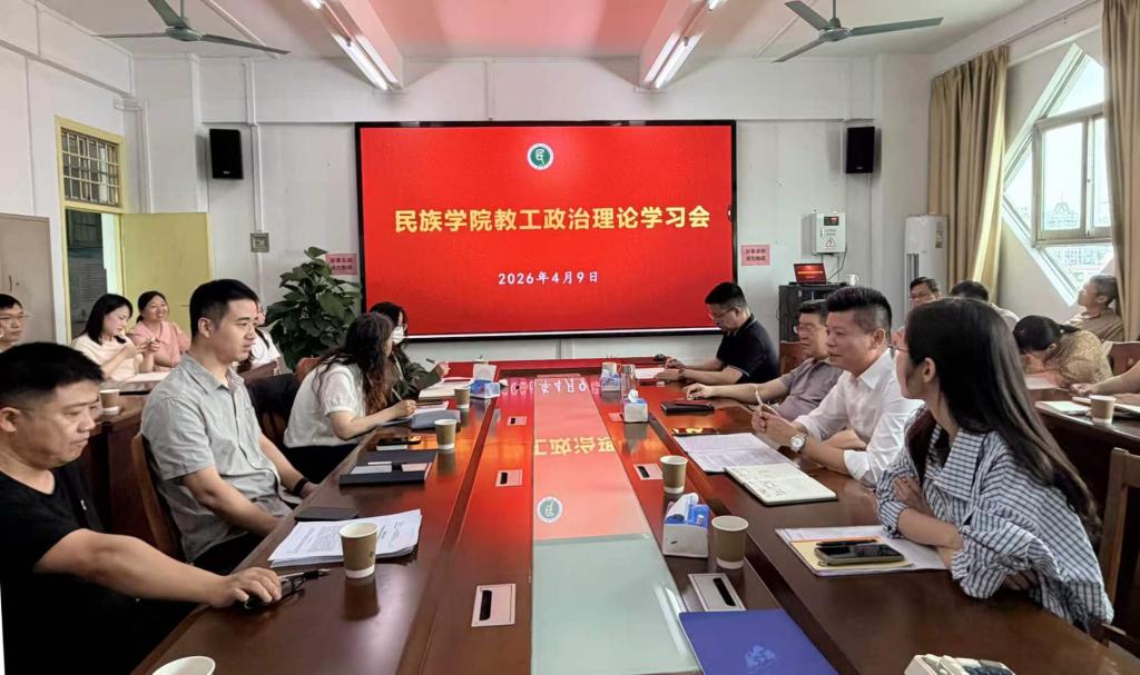 4月9日,民族学院组织全体教工政治理论学习。会上,学院党委书记黄文浩带领全体教职工专题学习最新出台的《中华人民共和国民族团结进步促进法》。