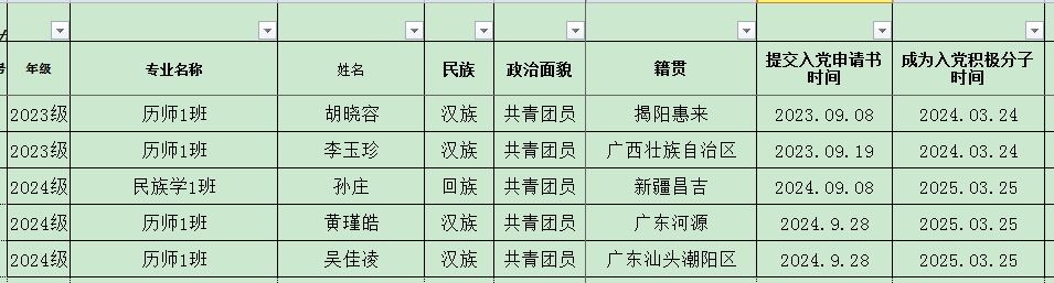 经民族学院“石榴籽”学生党支部培养考察,支部委员会讨论并报学院党委审查同意,拟确定孙庄等5位同志为发展对象。根据学校党委组织部《关于实行发展党员公示制度的实施意见》精神,党员和群众对确定以下同志为发展对象如有意见,可采用口头或书面形式于4月29日前向民族学院党委或学校党委组织部反映。反映情况时要自报或签署真实姓名,要有具体事实,不签署真实姓名或不提供具体事实材料的,一律不予受理。